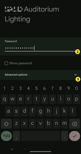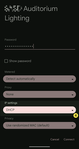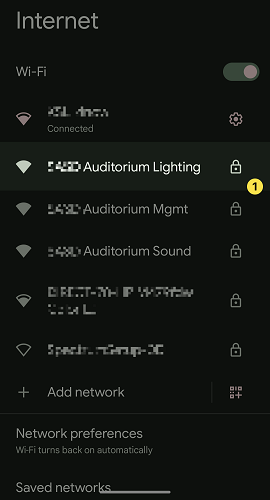 Open your Wi-Fi/Network settings and tap on the lighting or sound control network you want to use.