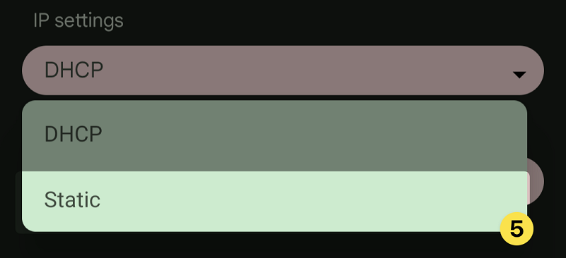 In the advanced settings screen, tap on the IP Settings dropdown. (Probably currently shows DHCP.)