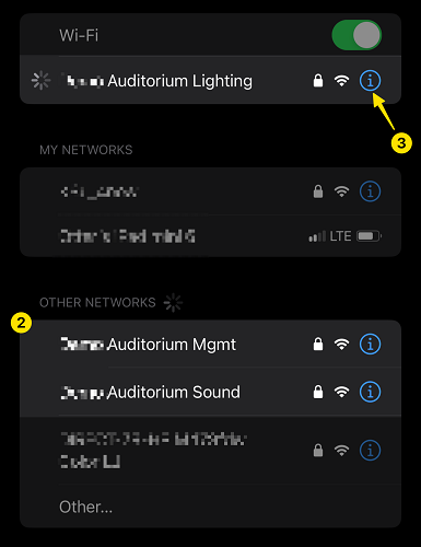 Once the network shows at the top, tap on the symbol to the right of the network name.